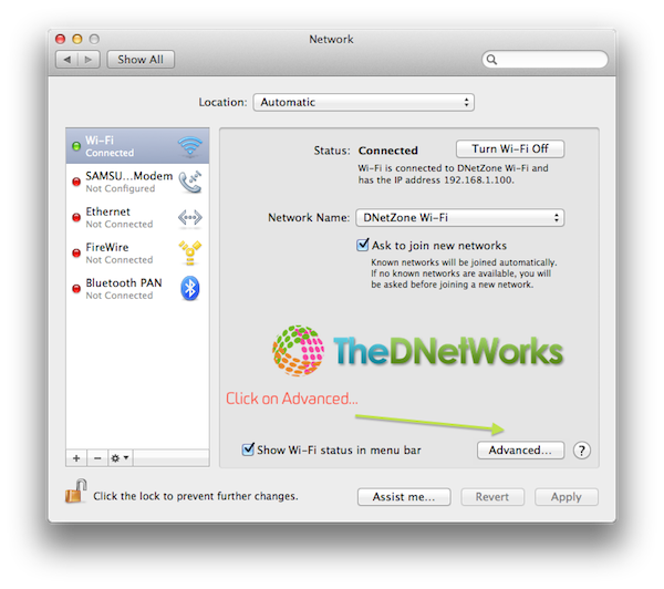 2. Get the IP address of the Mac from the Network option in System Preferences, it is 192.168.1.101 here.