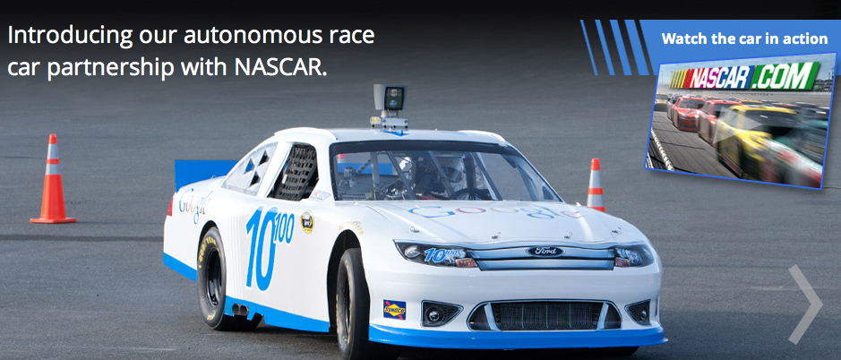 Sergey himself announced this partnership with Nascar to make a self driven car capable of navigating a track at speeds upwards of 200mph while surrounded by other cars!
